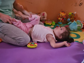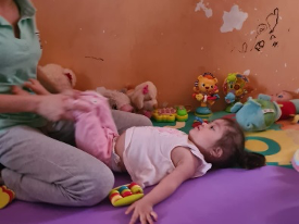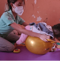 En la actualidad los casos Necesidades Educativas Especiales (NEE) ha aumentado con el paso de los años, esto quiere decir que niños o niñas pueden tener una dificultad o retrasos en el aprendizaje, las necesidades educativas pueden estar asociadas o no asociadas a una discapacidad. La siguiente informacion fue obtenida en una evaluacion realizada a una niña de 27 meses de edad con sindrome de Down, mediante el cuestionario de desarollo de Battelle el cual presentó un puntaje inferior en el área de motricidad gruesa y fina, reflejó que la niña tiene un retraso significativo, ya que tiene una edad madurativa de 4 meses según el test.